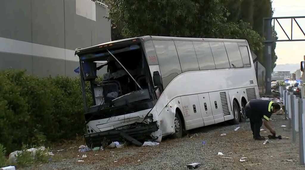 The preliminary investigation suggests that the SUV became disabled for unknown reasons in a lane and the tour bus then collided with the rear of the SUV, the CHP said. After the impact, the bus veered to the right across all lanes and collided with the guardrail along the shoulder, the news release said.