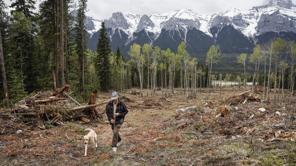 BANFF — Looking out over a budding meadow with blackened tree stumps on the edge of Banff National Park, Cliff White points to a dark thicket of trees where the empty plot ends.