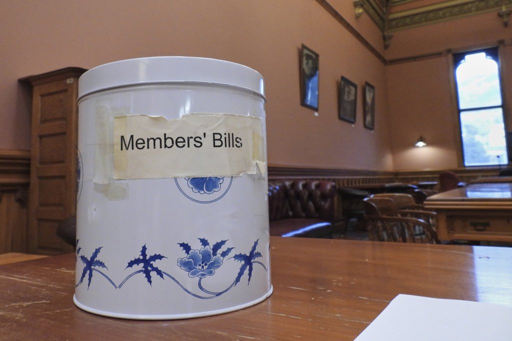 But on one day each fortnight that Parliament sits, bills drawn from the cookie tin are debated. On Thursday, with spaces for three new bills suddenly available, Wilson presided over a ballot in Parliament’s library.