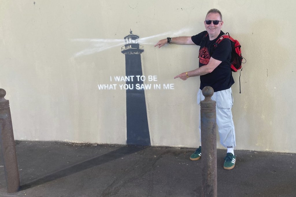 MARSEILLE, France (AP) — The lighthouse appeared overnight. Painted on a wall tucked away in a quiet Marseille street, its beam aligned perfectly with the real-life shadow of a metal post on the pavement. At its center, stenciled in crisp white, are the words: “I want to be what you saw in me.”