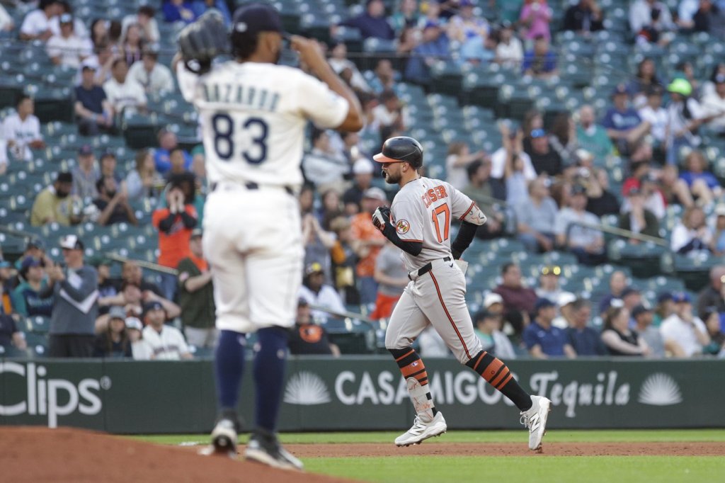 Cowser, who hadn’t played in a major league game since March 30 due to a broken left thumb, cranked a solo shot to left field in the sixth inning for his second home run. It was Cowser’s first home run since March 29, and came shortly after Mariners right-hander George Kirby (0-3) exited after taking a line drive off his face.