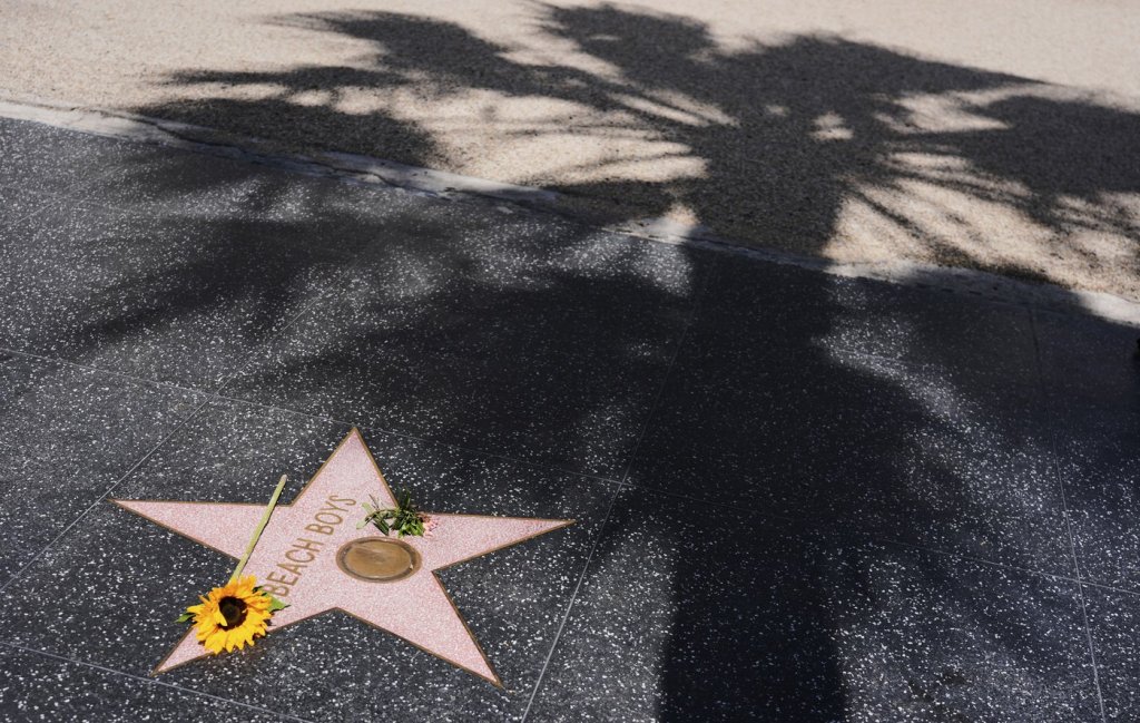 A sunflower lies atop the Beach Boys’ star on the Hollywood Walk of Fame after the announcement of the death of the band’s main songwriter Brian Wilson at 82, Wednesday, June 11, 2025, in Los Angeles. (AP Photo/Chris Pizzello)