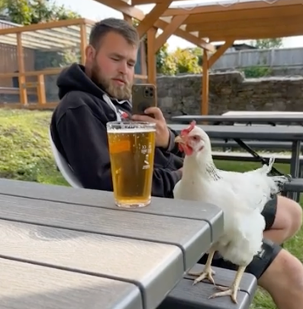 I guess you could make the argument that beer is made from grain and chickens love grain.