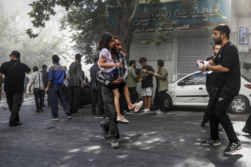 Iran’s state TV broadcast footage of a dust-covered man carrying a baby away from the ruins of a residential building and a woman covered in blood making panicked phone call from the site of an Israeli missile strike in downtown Tehran. The spokesperson for Iran’s Health Ministry, Hossein Kermanpour, said 90% of the 224 people killed were civilians.