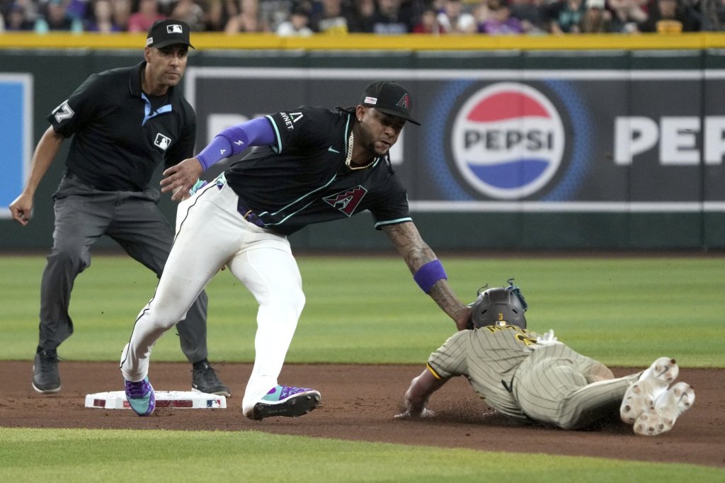 Merrill was injured in the seventh inning when he attempted a stolen base, but was tagged out by Arizona second baseman Ketel Marte. The tag came on Merrill’s helmet as he slid head first and he was down for several minutes before walking off the field. He was replaced in the field by Brandon Lockridge.