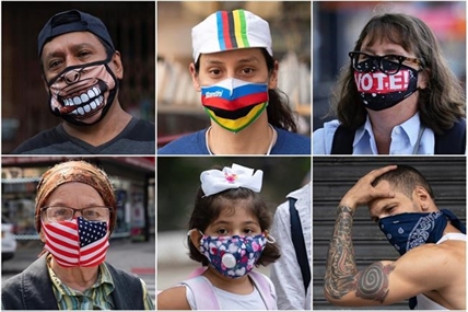 New Yorkers have increasingly embraced the wearing of masks to slow the spread of coronavirus since the pandemic began earlier this year. With no end in sight, many have moved beyond the standard surgical mask and are choosing to express themselves with more fashionable colours, patterns, flags and messages.