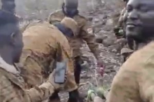 In the videos, men in military uniform are shown butchering corpses of what appear to be civilians with machetes, hacking out organs and posing with severed limbs. One fighter says he is about to eat someone’s liver. Another says he is trying to remove their heart.