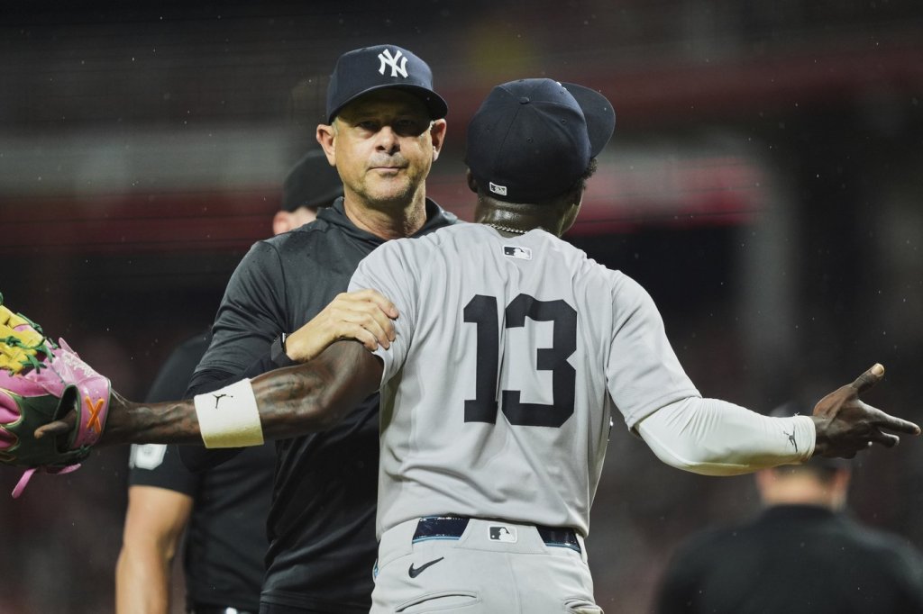 Manager Aaron Boone came out to try and held Chisholm back from Wegner.