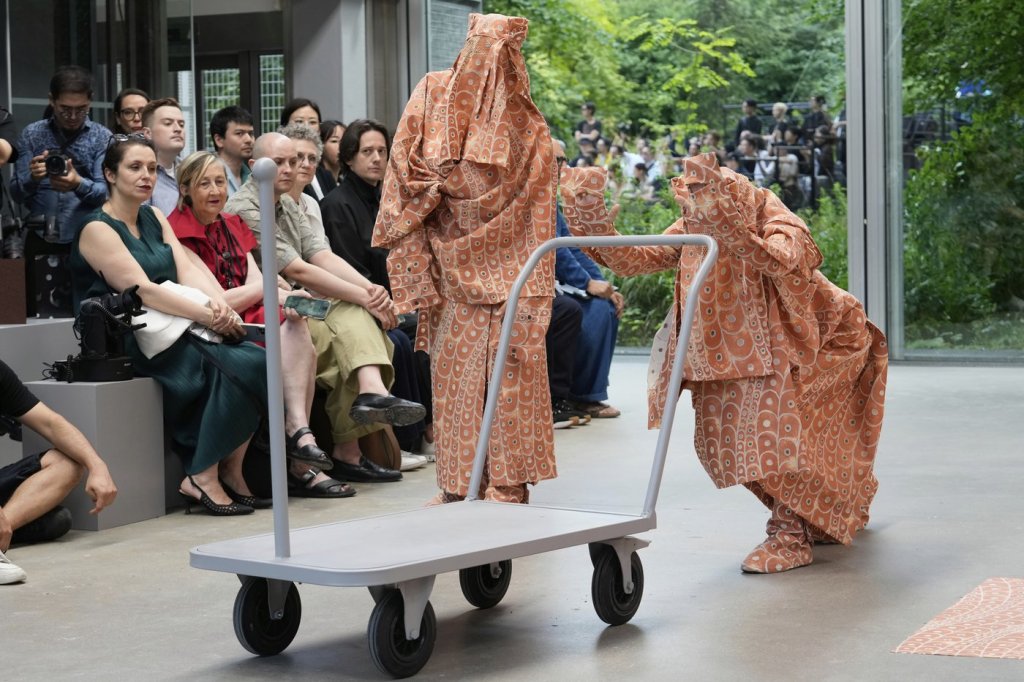 Of course, the fashion house’s embrace of the avant-garde still courts danger. Thursday’s spectacle occasionally veered into excess, with kinetic art and sci-fi headgear that threatened to upstage the clothes themselves — a familiar Miyake risk. But the best moments, like a pared-back tangerine overcoat that floated past, proved restraint can sometimes steal the show.