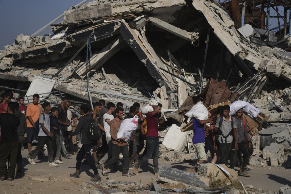 In Gaza City, large crowds gathered Thursday at an aid distribution point to receive bags of flour from the convoy that arrived the previous evening, according to photos taken by a cameraman collaborating with the AP.