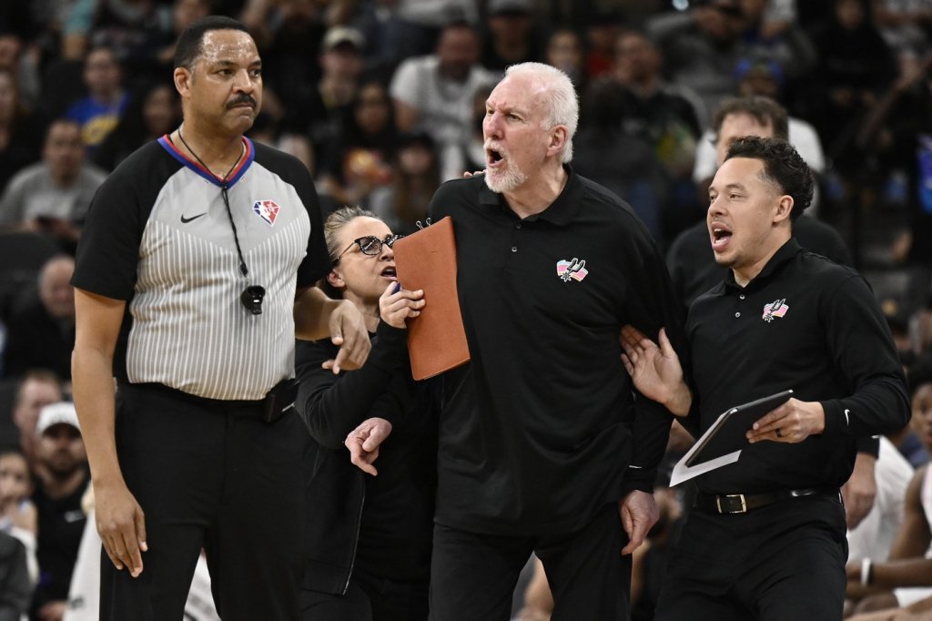 The NBA has adjusted all-time wins leader Gregg Popovich’s career record as coach of the San Antonio Spurs, removing the 77 games that he missed last season and crediting those wins and losses to new Spurs coach Mitch Johnson.