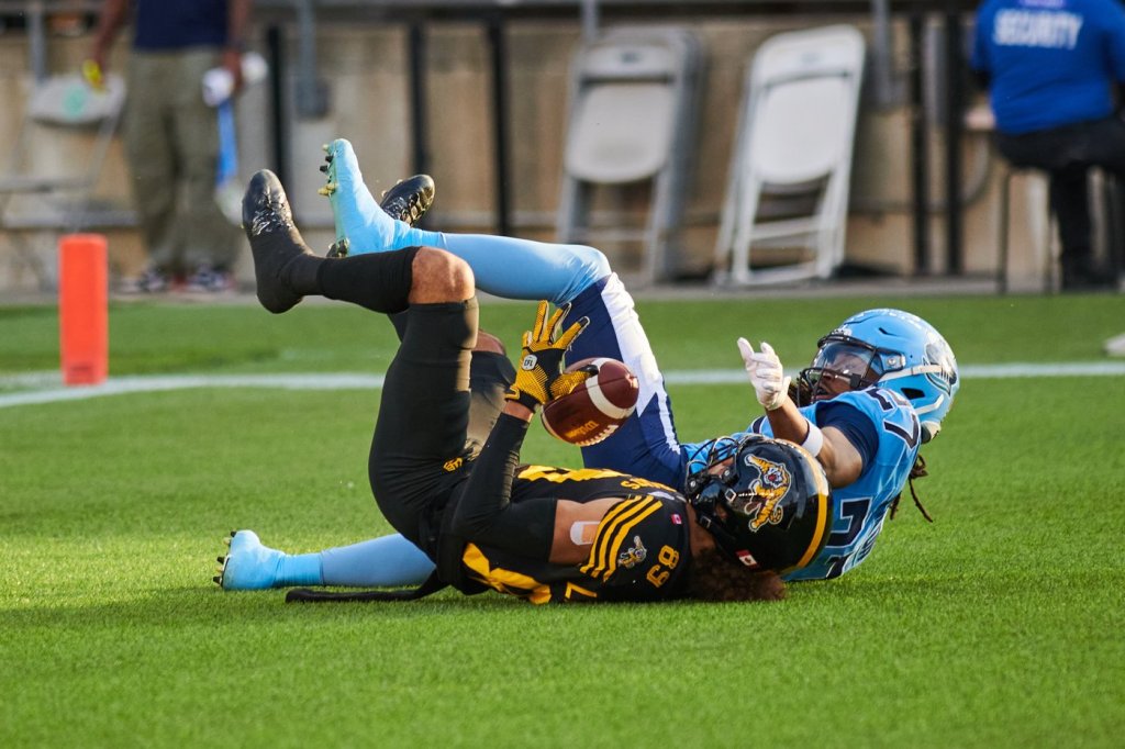 Toronto pulled to within 44-32 on Khalan Laborn’s one-yard run at 8:01 but the two-point convert attempt was unsuccessful. Then Hamilton’s Isaiah Wooden Sr. returned the kickoff 86 yards for a touchdown at 8:47.