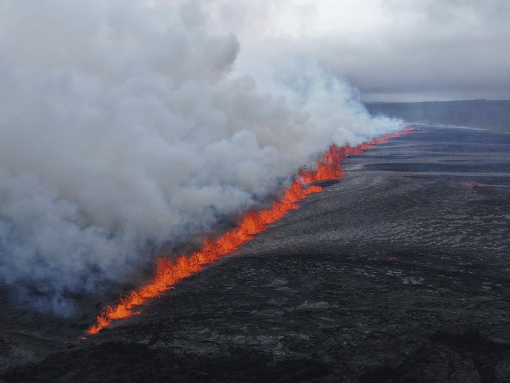 Lava from the eruption is flowing southeast from a fissure in the barren landscape that is 700 to 1,000 meters (2,296 to 3,280 feet) wide, but the molten rock isn’t threatening any infrastructure, the Met Office said.