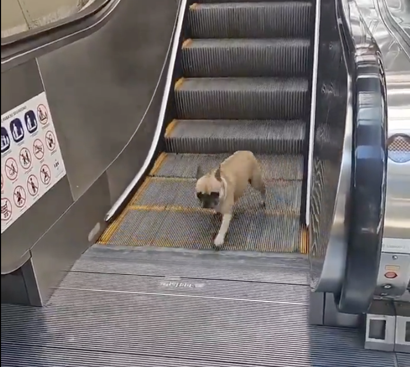 It may have been the motion and the feeling of freedom that has him going back for more but more likely it was the butt scratches from the escalator brushes.