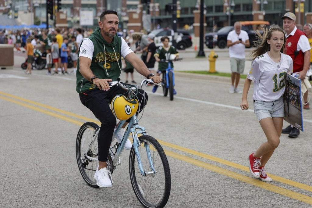 NOTES: Former Denver Broncos head coach and New York Jets offensive coordinator Nathaniel Hackett was at Packers camp Wednesday to consult with Green Bay’s defense, playing the same advisory role that former Jets coach Robert Saleh had in helping out Green Bay’s offense last year. Hackett was the Packers’ offensive coordinator from 2019-21. … Gutekunst said wide receiver Bo Melton will primarily work at cornerback during training camp, continuing a process that began in minicamp. That transition includes a change in uniform number, from No. 80 to No. 16. … Gutekunst said linebacker Quay Walker is “probably a week or so away” from practicing after undergoing a “cleanup” on his ankle in the offseason. … The opening day of training camp also marked the unveiling of the Packers’ new locker room. “It’s amazing,” running back Josh Jacobs said. “It’s a lot different, man. It just makes coming to work, even on them harder days, it makes it feel not as hard. You’re coming into something where you feel comfortable.”