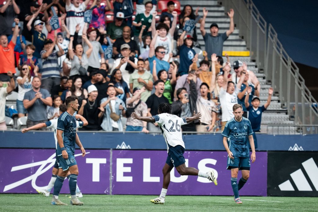 The Whitecaps opened the scoring in the 35th minute when Jayden Nelson sliced a ball across the top of the six-yard box to Emmanuel Sabbi, who slid and poked a shot in past SKC goalkeeper John Pulskamp to make it 1-0. The goal was Sabbi’s sixth across all competitions this season.