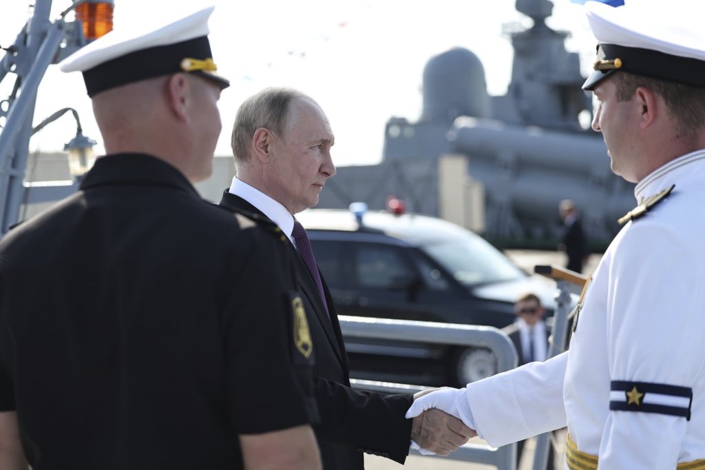 He also visited the Admiral Grigorovich frigate of the Baltic Fleet at the Kronstadt naval base just west of St. Petersburg to hail its crew for fending off a Ukrainian drone attack in the region earlier in the day.