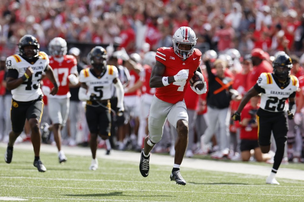 COLUMBUS, Ohio (AP) — Julian Sayin threw for four touchdowns, set an Ohio State record for completed passes to start a game and fell one short of the school record for consecutive completions as the top-ranked Buckeyes rolled to a 70-0 victory over Grambling State on Saturday.