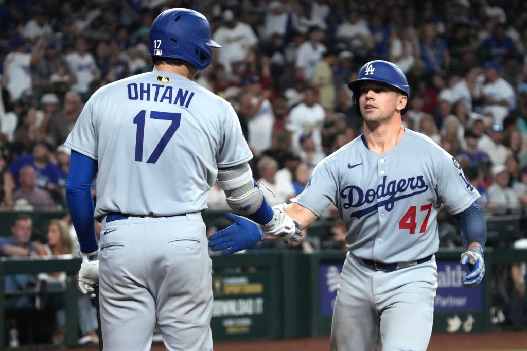Shohei Ohtani threw a season-high scoreless innings as the Dodgers built an early 4-0 lead. Teoscar Hernández had a three-RBI night.