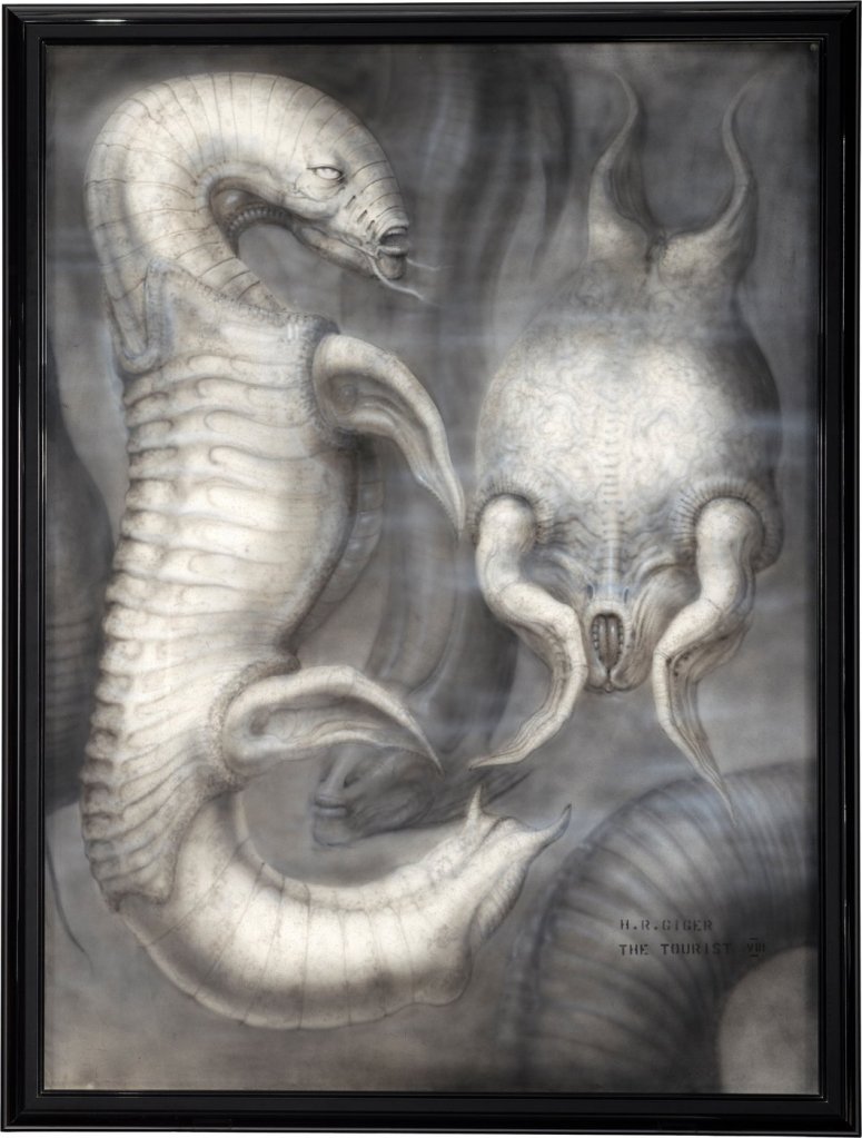 The highest-selling item Friday was a painting by H.R. Giger, part of the concept design created for an unproduced script titled “The Tourist.” It was an auction record for any artwork by the Swiss artist, who is known for creating the creature in the sci-fi horror classic “Alien.” The $325,000 price includes the “buyers premium” attached to all auction items for the house that sells it.