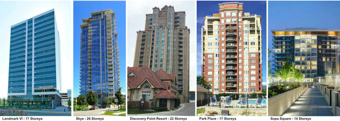 The report also includes renderings of other high-rise buildings in Kelowna as a comparison.