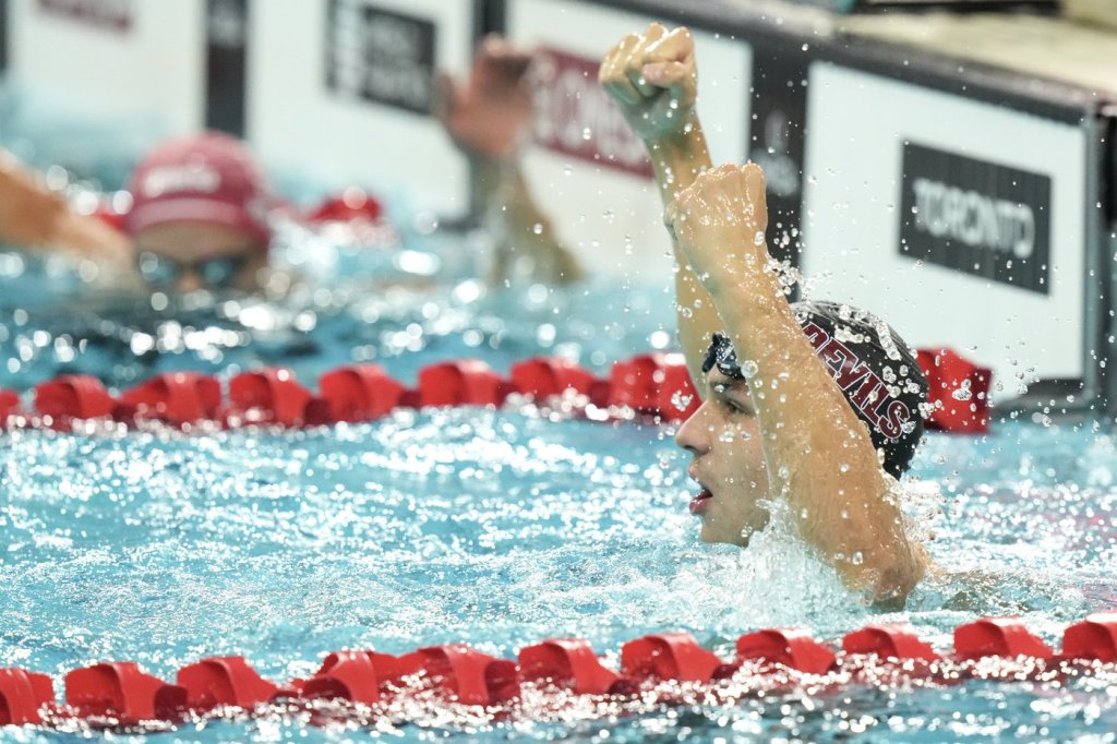 Other international athletes who completed a triple crown with a victory on Day 3 included USA teammates Luke Hobson in the men’s 200 free (1:39.94), Gretchen Walsh in the women’s 100 fly (53.10) and Alex Walsh in the women’s 200 IM (2:04.01).