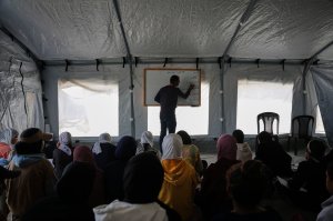 Students attend a morning assembly at a school set up on the beach in Khan Younis, southern Gaza Strip, Wednesday, Nov. 12, 2025. (AP Photo/Abdel Kareem Hana)Tahreer al-Awaini, 33, holds her daughter’s prewar certificates inside a classroom where she and her children now live, in Khan Younis, Gaza, Wednesday, Nov. 12, 2025. The school was bombarded in July 2024 during the Israel-Hamas war. (AP Photo/Abdel Kareem Hana)Palestinian high school students return to class, weeks after a ceasefire was announced between Israel and Hamas, at the Kamilia School in the Old City of Gaza City, Wednesday, Nov. 12, 2025. (AP Photo/Jehand Alshrafi)Tahreer al-Awaini arranges blankets inside a classroom at a school that was bombed in July 2024 in Khan Younis during the Israel-Hamas war, Wednesday, Nov. 12, 2025. (AP Photo/Abdel Kareem Hana)Students attend a morning assembly at a school set up on the beach in Khan Younis, southern Gaza Strip, Wednesday, Nov. 12, 2025. (AP Photo/Abdel Kareem Hana)Palestinian students attend class inside a tent set up on the beach in Khan Younis, Gaza Strip, Wednesday, Nov. 12, 2025. (AP Photo/Abdel Kareem Hana)Palestinian high school students return to class, weeks after a ceasefire was announced between Israel and Hamas, at the Kamilia School in the Old City of Gaza City, Wednesday, Nov. 12, 2025. (AP Photo/Jehand Alshrafi)Taj al-Hindi, 14, and her sister, Rimas al-Hindi, 15, fill water tanks inside a school that was bombed in July 2024 in Khan Younis during the Israel-Hamas war, Wednesday, Nov. 12, 2025. (AP Photo/Abdel Kareem Hana)Palestinian high school students return to class weeks after a ceasefire was announced between Israel and Hamas, at the Kamilia School in the Old City of Gaza City, Wednesday, Nov. 12, 2025. (AP Photo/Jehand Alshrafi)Palestinian high school students return to class weeks after a ceasefire was announced between Israel and Hamas, at the Kamilia School in the Old City of Gaza City, Wednesday, Nov. 12, 2025. (AP Photo/Jehand Alshrafi)A view of a school surrounded by buildings destroyed during Israeli air and ground operation in Khan Younis, southern Gaza Strip, Wednesday, Nov. 12, 2025. (AP Photo/Abdel Kareem Hana)
