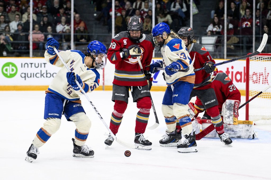 Sophie Jaques and Michelle Karvinen tallied for Vancouver (3-1-1-6) and Kristen Campbell made 23 saves.