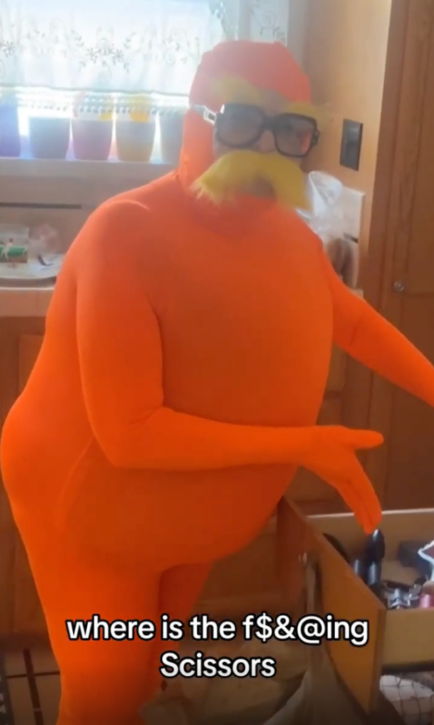 Apparently it’s difficult to unzip the costume feature Dr. Seuss’ beloved Lorax.