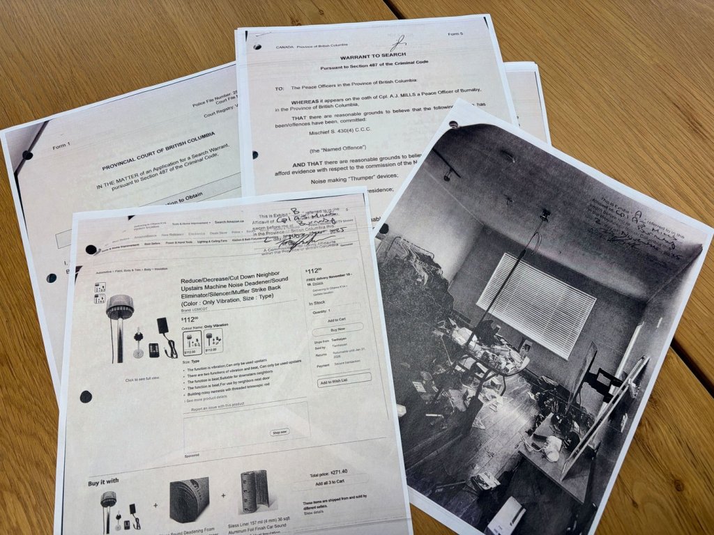 In the Burnaby case, the warrant document says that the suspect was in the shower when police entered his home, and he was “unco-operative and mute” under questioning. After the officers left the Lane Street property on Oct. 25, two more noise complaints about the unit followed in the next few days.