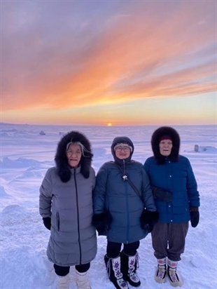 Elders Mary Akariuk Kaotalok and Bessie Pihoak Omilgoetok, both in their 80s, were there. As Omilgoetok saw the sun rise, she was reminded of a tradition her grandparents taught her. Each person takes a drink of water to welcome and honour the sun, then throws the water toward it to ensure it returns the following year.