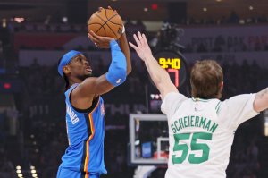 The Oklahoma City Thunder guard hit two free throws in the third quarter against the Boston Celtics to reach 19 points. With the crowd on its feet, Gilgeous-Alexander pump-faked several times and drilled a jumper over Baylor Scheierman from beyond the free-throw line with 7:04 left in the period to push his total to 21