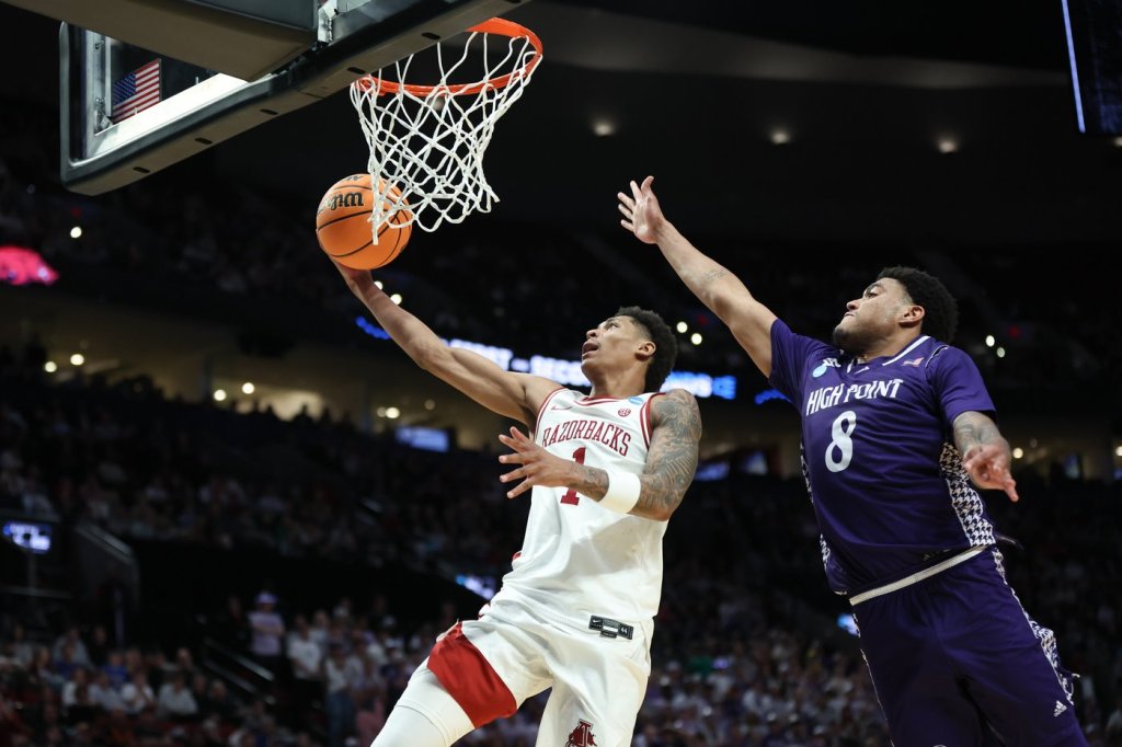 Against Arizona, the Razorbacks will face another high-scoring freshman duo in Brayden Burries and Koa Peat. Arizona beat No. 9 seed Utah State 78-66 on Sunday to advance.