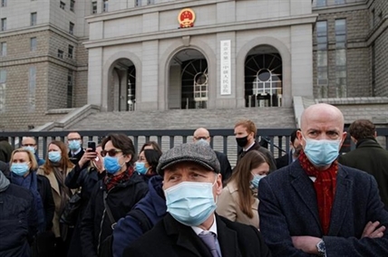 Outside Beijing's No. 2 Intermediate Court, Jim Nickel, the Canadian Embassy’s deputy chief of mission, said he'd been told the trial had begun, but was barred from entry in what he complained was a violation of China's international and bilateral treaty obligations.