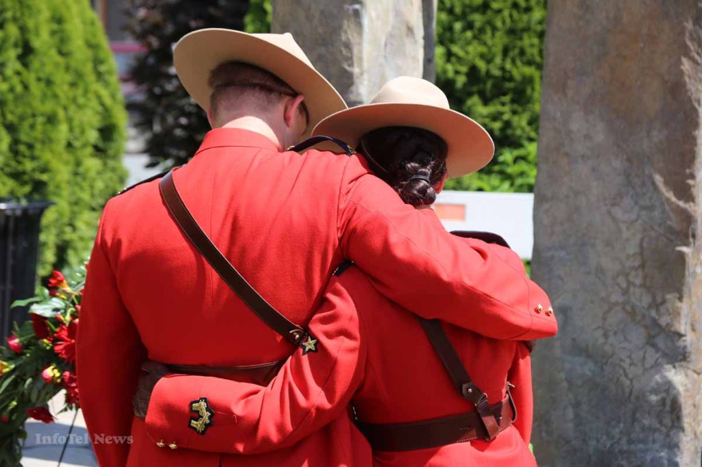 Kamloops RCMP were joined by Kamloops Fire Rescue, Kamloops Search and Rescue, corrections workers, local politicians and members of the public for the nearly 30 minute ceremony Tuesday afternoon. Supt. Brad Mueller spoke of the close ties Kamloops now has with Moncton, having also had three officers killed by a gunman 52 years ago.