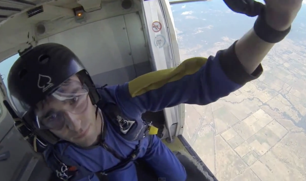 The skydiving incident happened in November 2014 and was recently posted to YouTube.