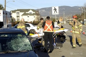 KELOWNA – A female cyclist was taken to hospital Tuesday after she and an SUV collided at the intersection of Casorso and Gordon.
