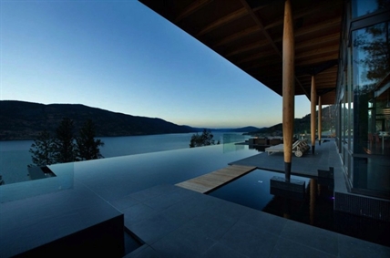 From the deck and luxury, infinity pool you can see across Okanagan Lake to Bear Creek Provincial Park.