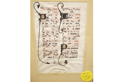 Instead of a kitchen appliance, Will Sideri stumbled upon a framed document hanging on a wall. It had elaborate script in Latin, along with musical notes and gold flourishes. A sticker said 1285 AD. Based on what he’d seen in a manuscripts class at Colby College, the document looked downright medieval.