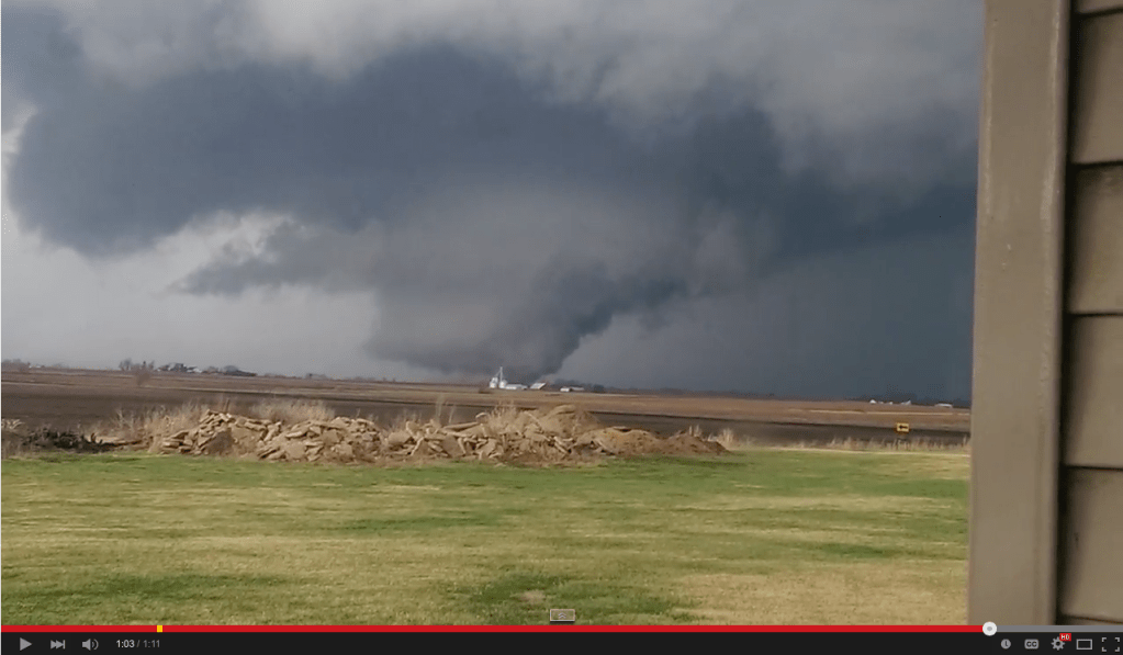An amateur videographer captured some terrifying footage of an EF4 tornado which hit Rochelle, Illinois.