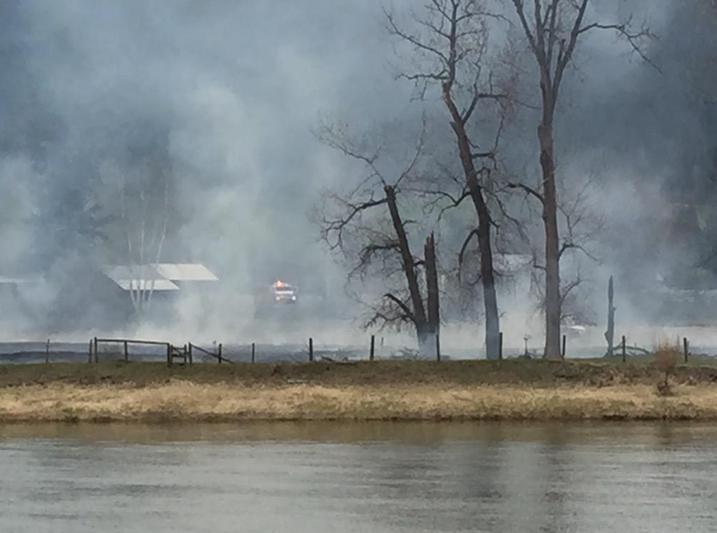 The fire was reported at about 1:30 p.m., April 13, in a field on Meadowview Road in Grindrod. Deputy fire chief Shane Williamson says the property owner lit the fire earlier in the day to burn off dead grass, but when the wind picked up, the blaze grew out of control.