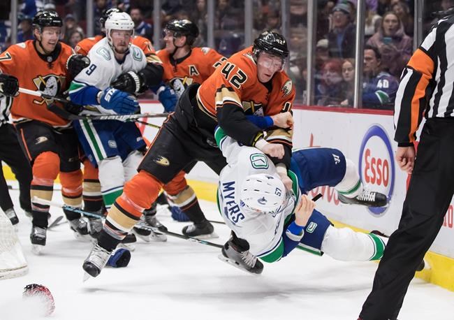 The loss leaves the Canucks one point behind the Edmonton Oilers in the race for first place in the Pacific Division and one point ahead of the Vegas Golden Knights. The Ducks remain 11 points out of a playoff spot.