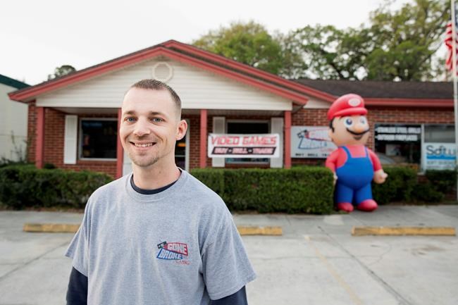 Scott Fisher owns a video game store in the city of Orange Park, a suburb of Jacksonville. He says the city is acting like the Super Mario Bros. game villain Bowser. Fisher filed a federal lawsuit on Thursday arguing that the town’s ban violates his free speech.