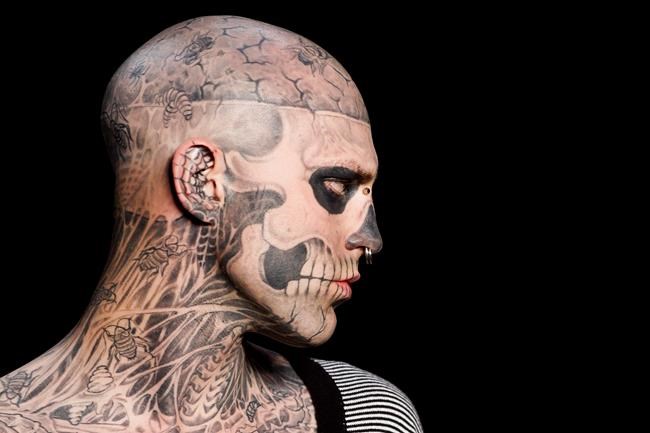 The Montreal native once known for frequenting homeless shelters got his first tattoo at 16 and went on to eventually cover more than 90 per cent of his body in ink, including the image of a skull over his face.
