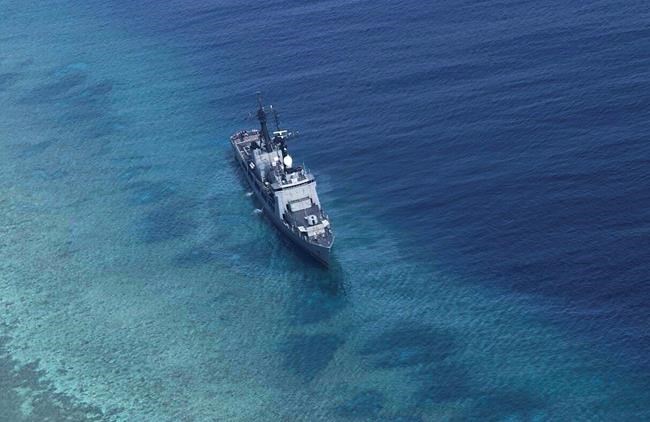 A Chinese frigate ran aground on the shoal in 2012 and was pulled away by Chinese military ships.