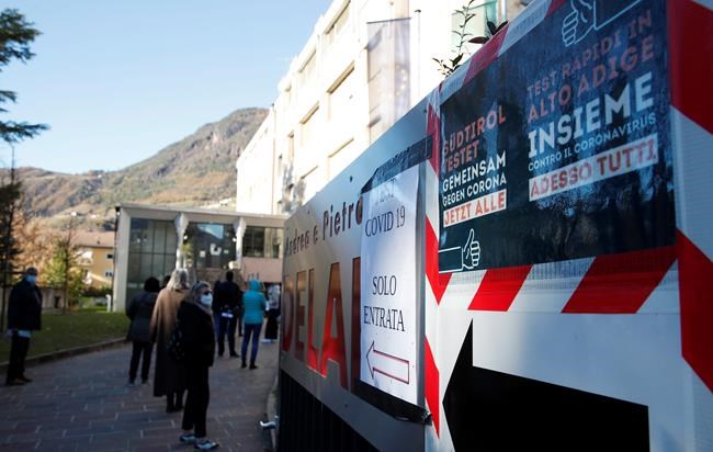 BOLZANO, Italy – Citizens in Italy’s small Germany-speaking province of South Tyrol lined up Friday at schools, gymnasiums and pharmacies for rapid coronavirus tests, the largest testing initiative in the country to date and one that officials hope will speed the lifting of a partial locally imposed lockdown.