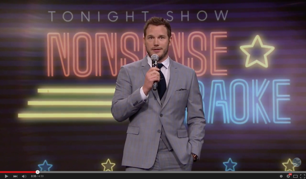 Chris Pratt of Guardians of the Galaxy fame agreed to go along with Jimmy Fallon's Nonsense Karaoke on the Tonight Show.