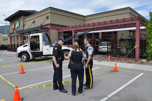 Four people are now suffering non-life threatening injuries after a dodge caravan rode right into the patio section of the popular West Kelowna restaurant at 3470 Carrington Road. RCMP say the van was parked before accelerating onto the patio and crashing into the side of the restaurant.