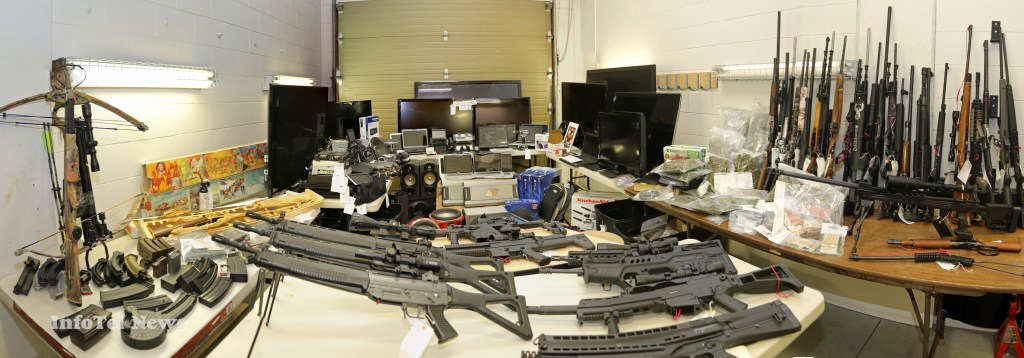 KAMLOOPS – Cocaine, marijuana, a crossbow, flat-screen TVs, dozens of guns, ammunition and more are the latest cache grab stored at the Kamloops RCMP detachment.