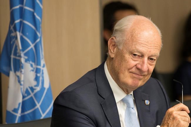 The envoy also said “I warmly welcome” a call by French President Emmanuel Macron for the creation of a “contact group” that would support a political road map for Syria after its six-year war ends one day.